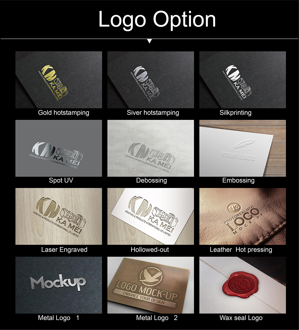 Logo: Silkprinting / Silk Screen / Hot stamping / Embossed